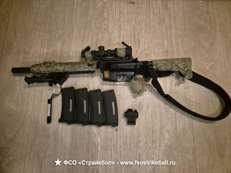 Продаю привод только в полном комплекте. Покупал для себя, отыграл сезон с ним на CQB, начал переделывать под открытые полигоны, но успел только внешку. Привод: East Crane sr16 покупался в зелёном магазине, сейчас новый стоит 30к Загонник: покупался на алике за 10к +- Колиматор: брался у друга +- 5к 4 механ магазина East Crane. Ряд косметических обвесов, все брались в зелёном магазине.
